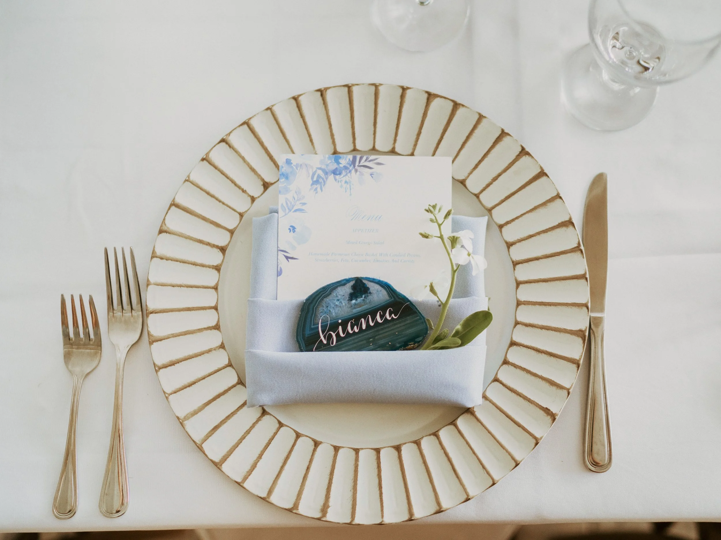Make your guests feel special AND let them know where to sit with handmade calligraphy place cards. These can be done on a variety of surfaces from standard or handmade paper cards to acrylic pieces, agate stones, tiles and any other surface that can be written on. There are endless options to create unique seating assignments for your guests and give them a pretty keepsake as a memento of your special occasion.